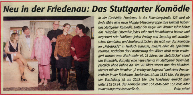 www.stuttgarter-komoedle.de. Übrigens hätten wir diesen Bericht auch unter 'Spezialitäten aus dem Süden'