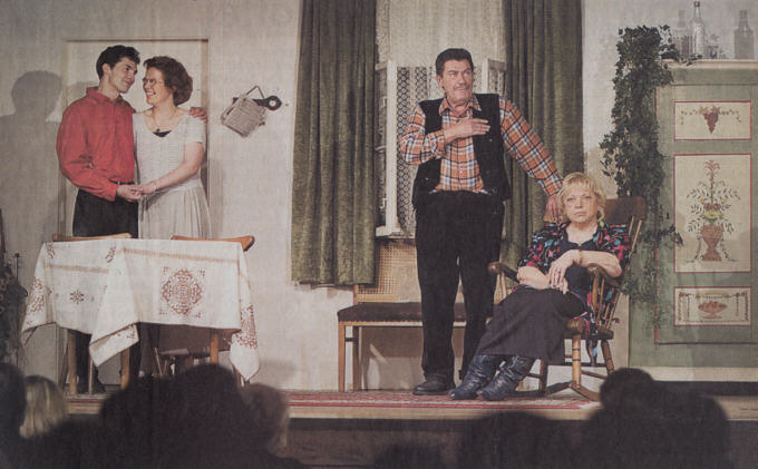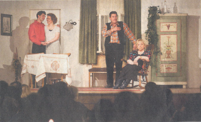 nennt, sind meist gut besucht. Gerade wurde für "Zwoimal am Tag" geprobt, auf der Bühne stehen zwei Holztische, vier
